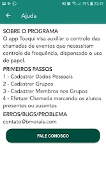 Toaqui - ควบคุมการเข้าร่วมเป็นแอปพลิเคชัน Android ที่พัฒนาโดย BMorais ที่มีให้ใช้งานฟรีในหมวดหมู่ การศึกษา & อ้างอิง แอปนี้มีจุดมุ่งหมายเพื่อช่วยจัดการการเข้าร่วมในสถานการณ์ต่างๆ เช่น ห้องเรียน โบสถ์ และกิจกรรมทางกายภาพ สิ่งที่ทำให้แตกต่างคือ สามารถใช้ได้โดยไม่ต้องเชื่อมต่ออินเทอร์เน็ต